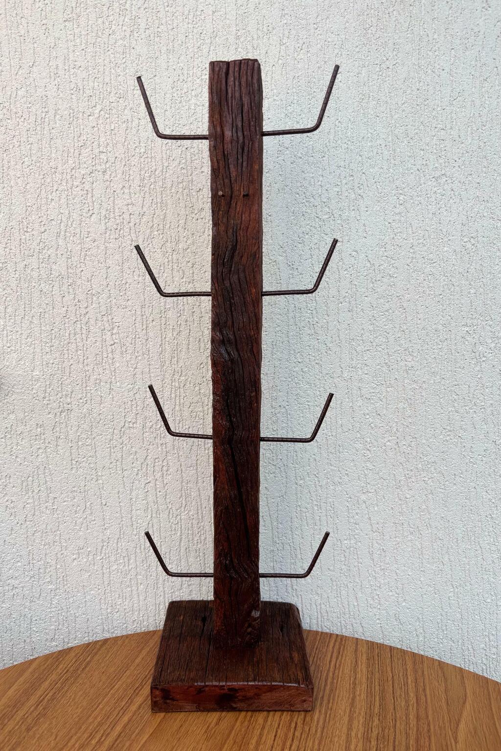 O Porta cuias em madeira rústica suporta pode suportar até 6 cuias e 1 bomba ou 8 cuias e 1 bomba, conforme disponibilidade. Serve para deixar suas cuias secando após a lavagem, eliminando mofos e mal odores.